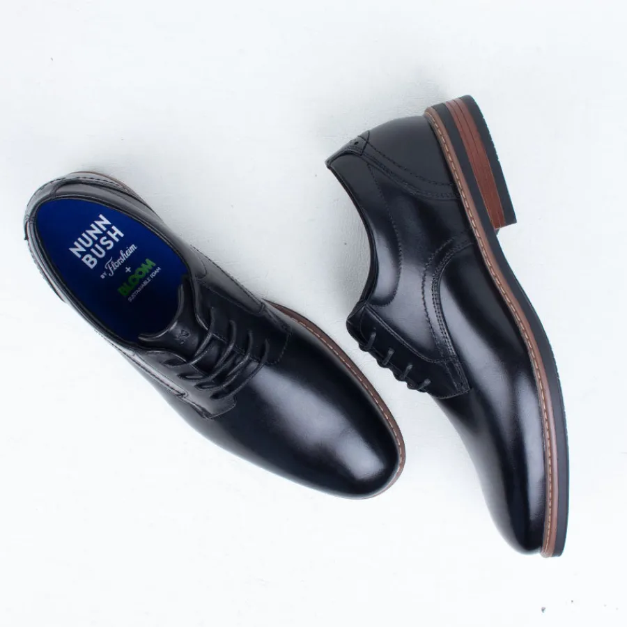 This classic oxford has been updated with a modern silhouette, stacked heel, and the comfort of an EVA footbed. Designed to wear with everything from your best suit to your favorite jeans, the Nunn Bush Centro Flex Plain Toe Oxford is a versatile addition to any collection.