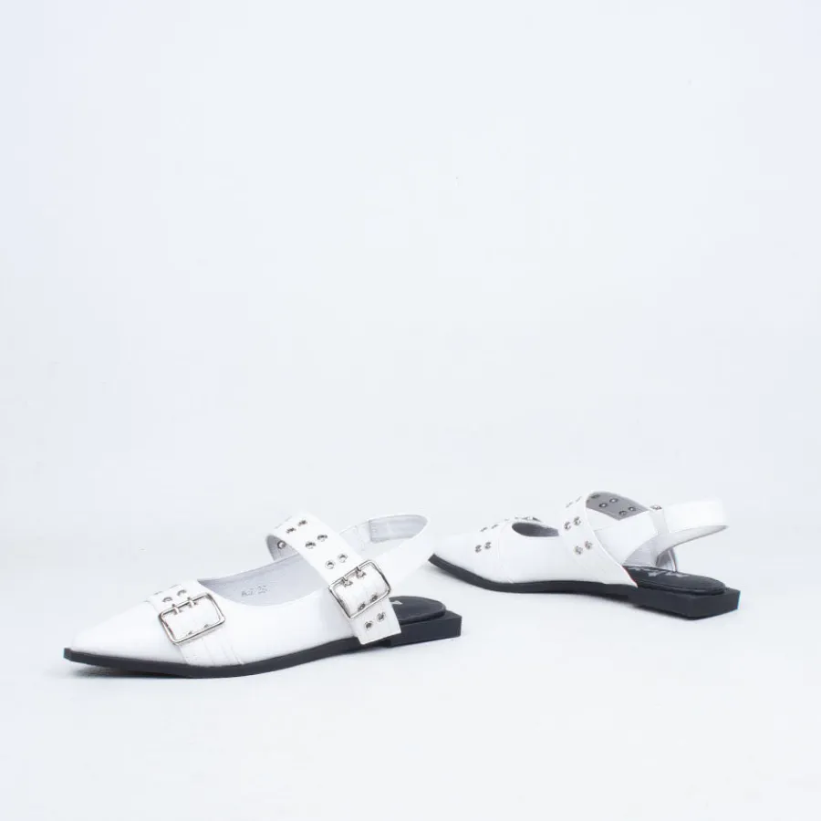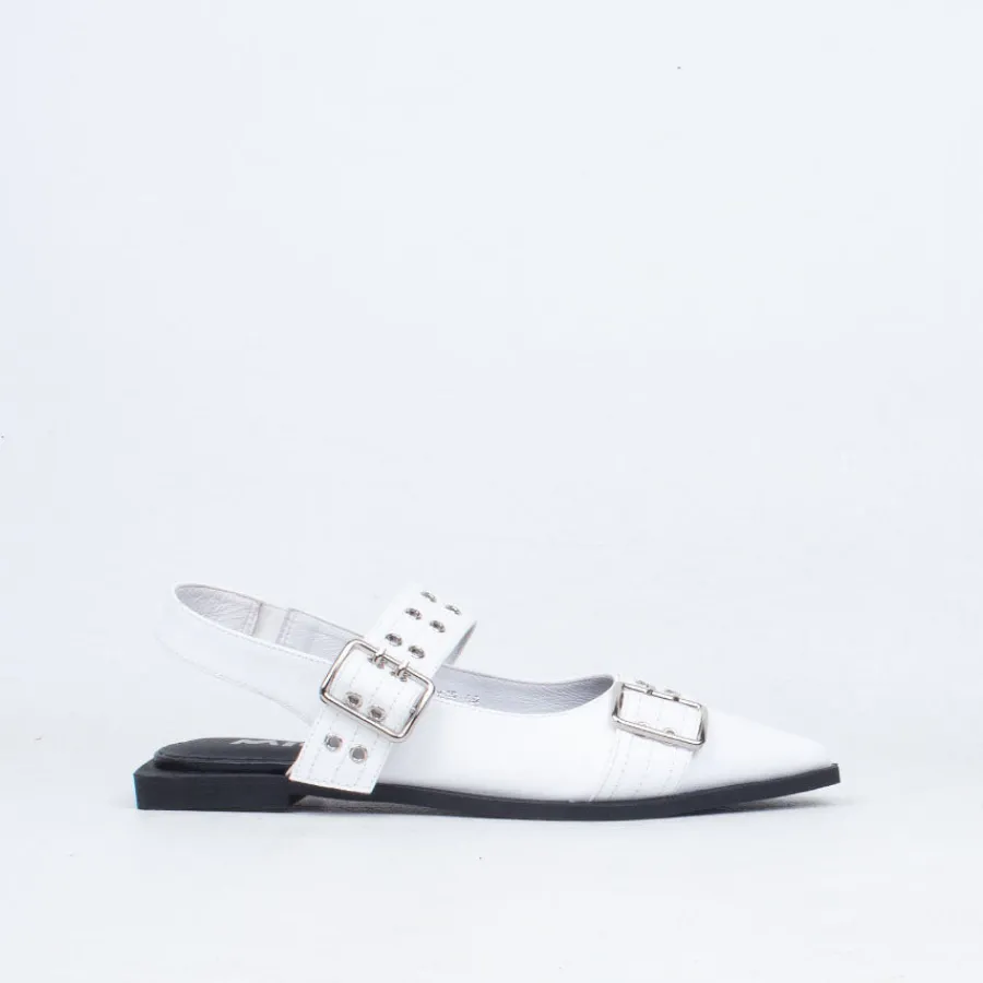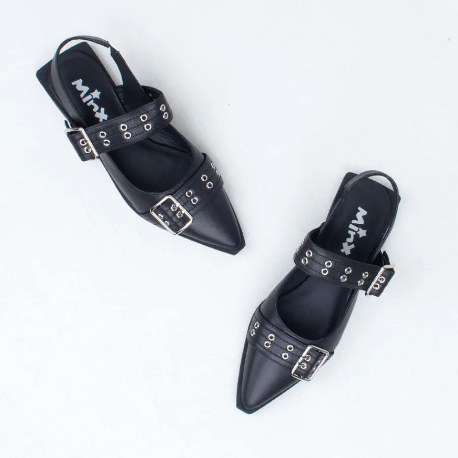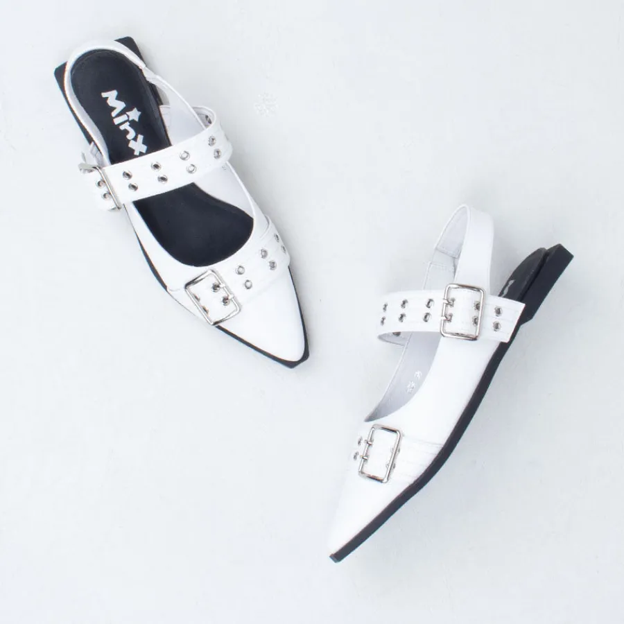 Introducing Mor, a flat grunge-inspired pointed flat with an exaggerated rand, offering a contemporary take on a classic aesthetic. Crafted from premium full leather, these fashion flats feature a standout front toe strap and an adjustable top strap for a customizable fit, accommodating all insteps. With a soft underfoot feel, Mor provides effortless comfort, making it the perfect choice for all your daily duties and evening escapades. Pair them with wide-leg jeans or a midi skirt and tee for a chic daytime ensemble.